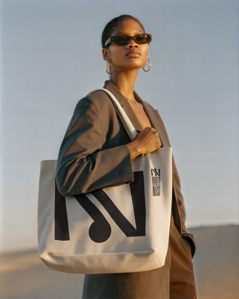 The logo was designed to subtly suggest a lock, an emblem of home and exclusivity without being overtly literal. Its geometry balances this while reflecting North & Nest’s curated and carefully designed atmosphere. The interplay of circular and diagonal forms creates a sense of harmony and connection, inviting guests into a space that feels both personal and elevated. Powder blue accents breathe energy into the palette, harmonising with the natural coastal tones and elevating the hotel’s quietly sophisticated, design-conscious identity.